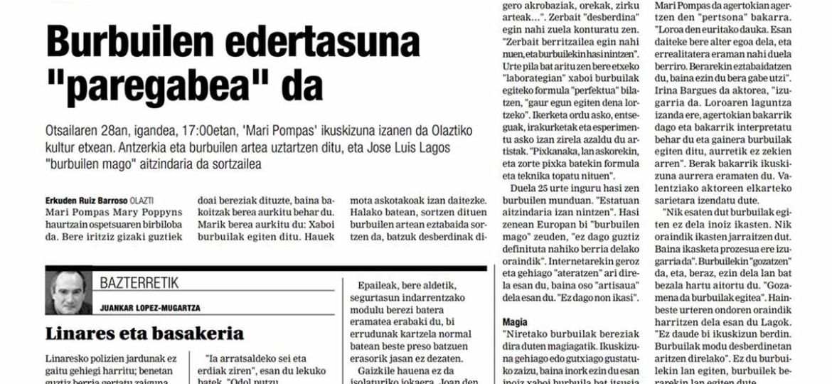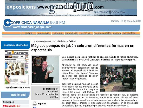 Nos dedicamos a la creación, producción y distribución de espectáculos, eventos, presentaciones y obras teatrales con pompas de jabón. Nuestro director José Luis Lago es referente y pionero en Europa en este arte tan particular.